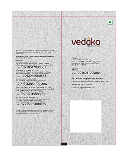 • All vedaka spices and seeds are hygienically packed and undergo stringent and rigorous laboratory tests to meet fssai food safety norms