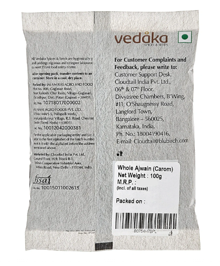 All vedaka spices and seeds are hygienically packed and undergo stringent and rigorous laboratory tests to meet fssai food safety norms;Net weight: 100g