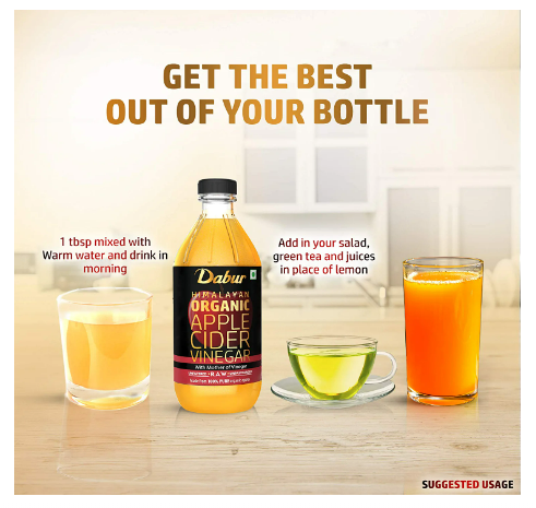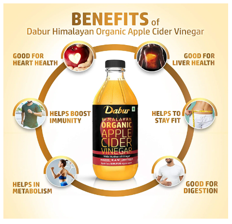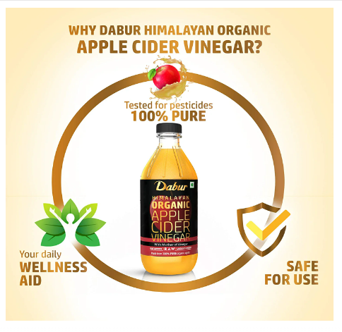 Dabur Himalayan Organic Apple Cider Vinegar with Mother of Vinegar |100% Pure | USDA Organic Certified | Raw, Unfiltered and Unpasteurized | Good for Heart and Liver Health | No added colours or preservatives - 500 ml
