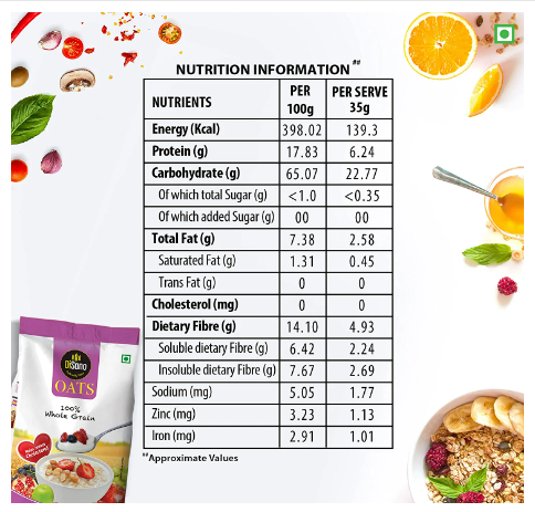 • Disano oats is made from 100 % wholegrain oats, which is a natural source of protein and dietary fibre