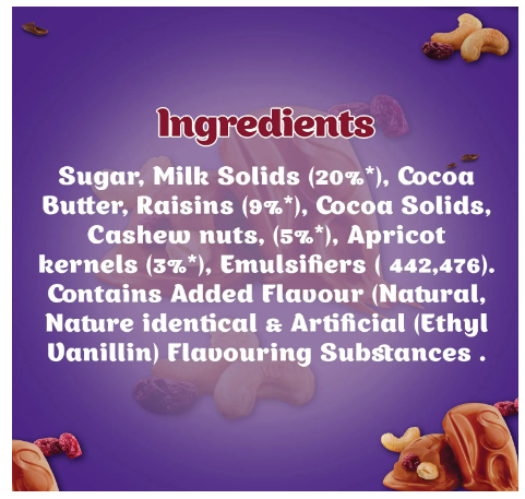 • Discover Cadbury's deliciously creamy milk chocolate bar with raisins, cashews and apricot.