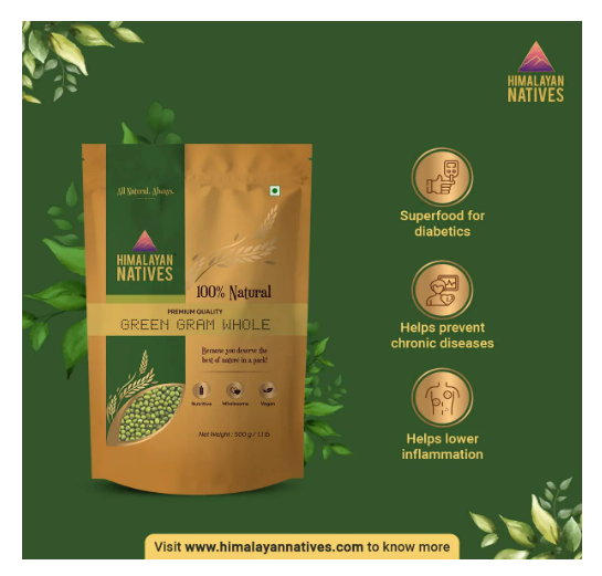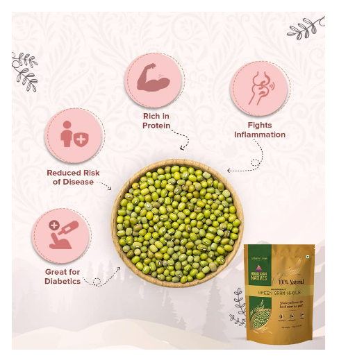 Himalayan Natives Green Mung, Green Moong, Green Gram Whole 1kg Pouch, 1000 g