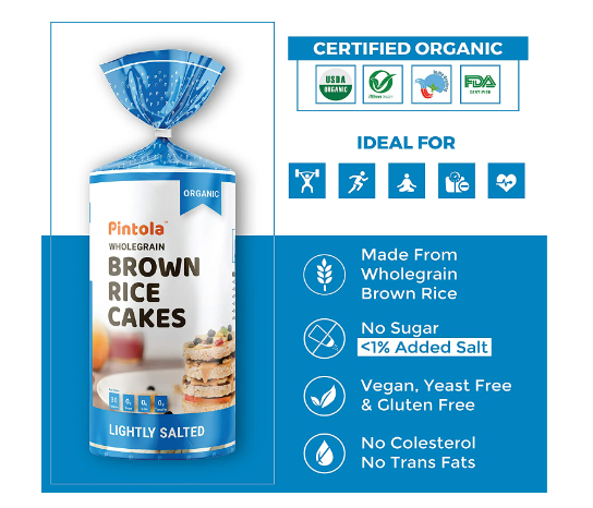 • Pintola Brown Rice Cakes are Ultra low on Fat, which makes it Diet Friendly
