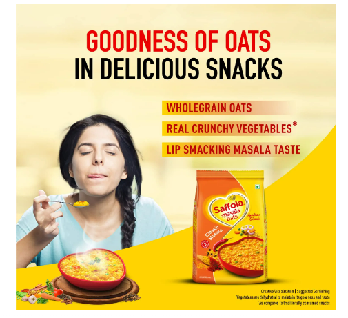Classic Masala from Saffola Masala Oats is a chatpata concoction of assorted Indian spices and a crunchy mix of carrots, onions and french beans