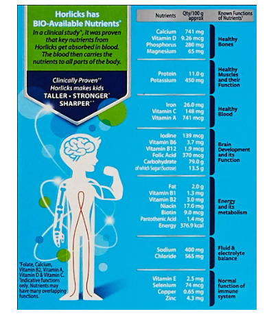 • Horlicks has Bio-Available Nutrients which get absorbed in the blood and are carried to all parts of the body.