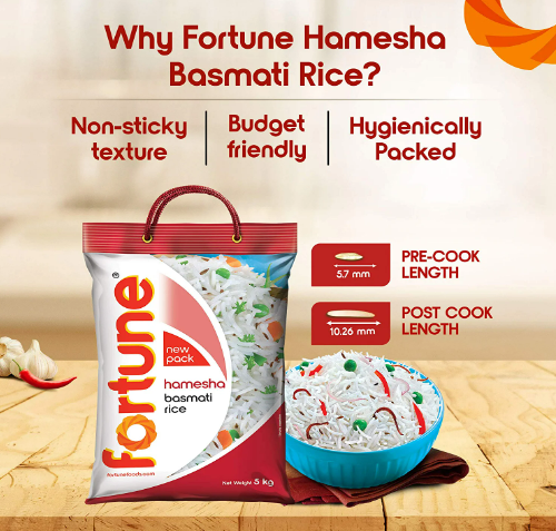 Fortune Hamesha Basmati Rice, suitable for daily cooking, 5 Kg