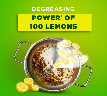 Vim Dishwash Bar has the power of 100 lemons(power refers to the cleaning benefits of lemons) which helps in the fastest removal of burnt food(as per the independent lab test conducted on burnt food stains).