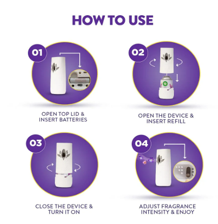 • It can be operated at 3 fragrance intensity settings - high, medium and low