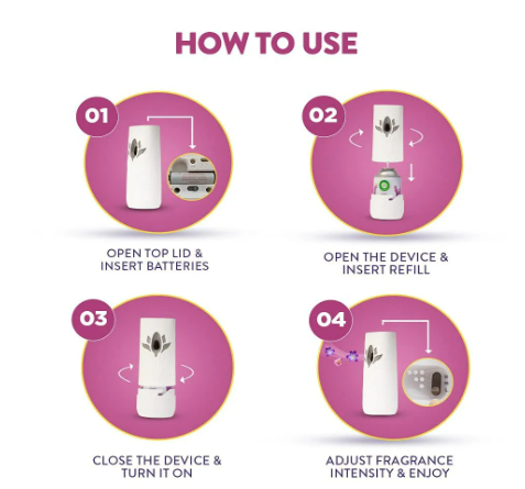 • It can be operated at 3 fragrance intensity settings - high, medium and low
