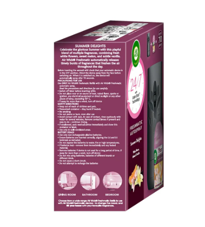 Airwick Freshmatic Automatic Air Freshener Kit [Machine + Summer Delights - 250 ml] White flowers,melon, vanilla fragrance| 2600 Sprays Guaranteed | Lasts up to 70 days