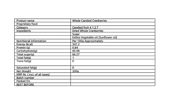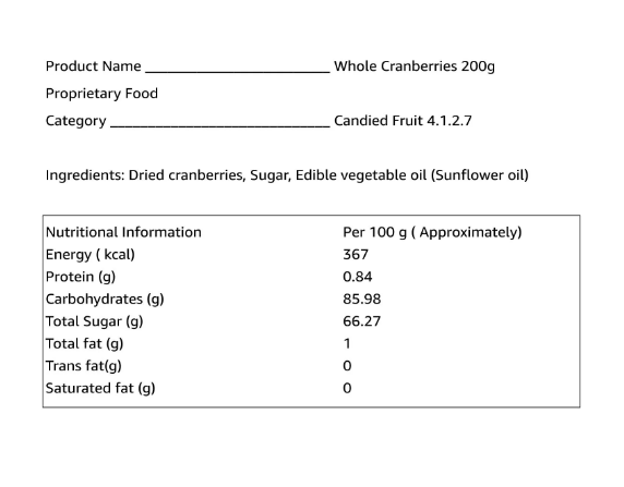 • Vedaka premium whole candied cranberries are hygienically packed at a certified manufacturing unit