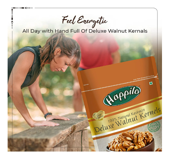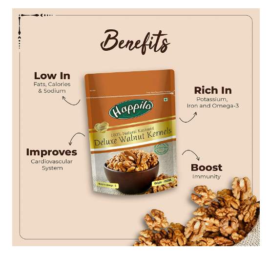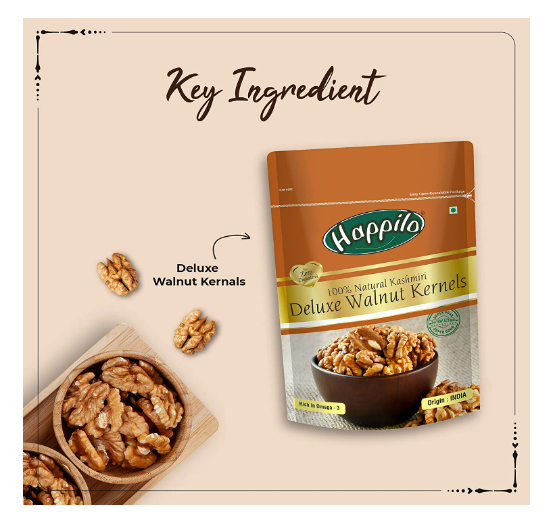 Happilo Deluxe 100% Natural Dried Kashmiri Walnut Kernels 200g | Premium Akrot Giri | Rich in Protein & Iron | Low Calorie Nut | 0g Trans Fat & Cholesterol Free