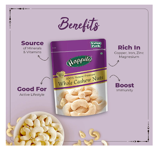 VEGETARIAN & VEGAN – Happilo Whole Cashew Nuts are 100% vegetarian and vegan - Vegetarian & vegan diets are richer in certain nutrients and have a number of health benefits.; NON-GMO - Vegan, Non-GMO Verified and fat free with no preservatives or added sugar. We never add any unnecessary sweeteners or colorants to our products.