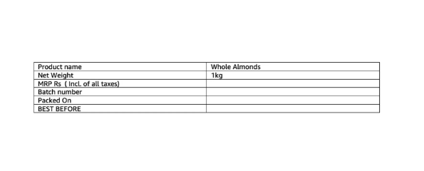 • Fresh almonds that are hygienically packed in facility meeting FSSAI food safety standards