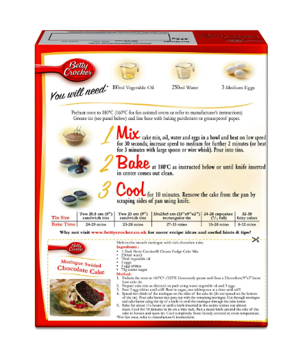 Mix, Pour & Bake Cake that is convenient to bake, just add egg, oil & water to the mixture and get ready to taste some delectable chocolate fudge cake.