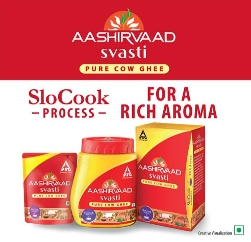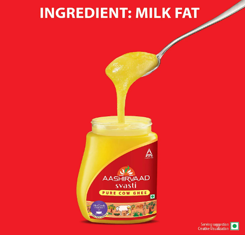 • Now enhance the aroma and deliciousness of every dish with Aashirvaad Svasti Pure Cow Ghee, which is made with love, in India