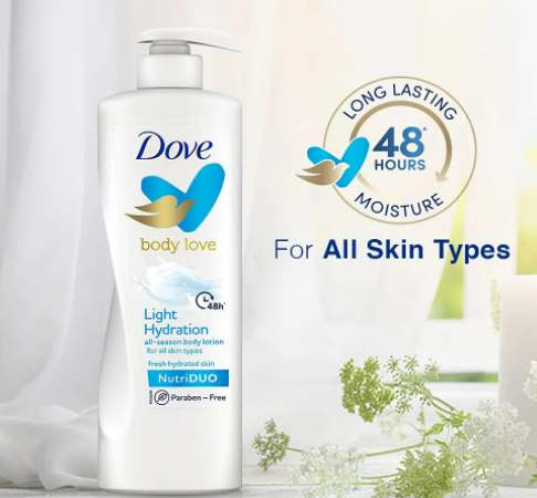 Dove Body Love Light Hydration Body Lotion For All Skin Types Paraben Free, 48hrs Moisturisation with Plant Based moisturiser, Fresh Hydrated Skin 400mlDove Body Love Light Hydration Body Lotion For All Skin Types Paraben Free, 48hrs Moisturisation with Plant Based moisturiser, Fresh Hydrated Skin 400ml