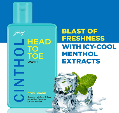 Cinthol Head to Toe, 3-in-1 Wash (Shampoo, Face and Body) – COOL WAVE, 190ml