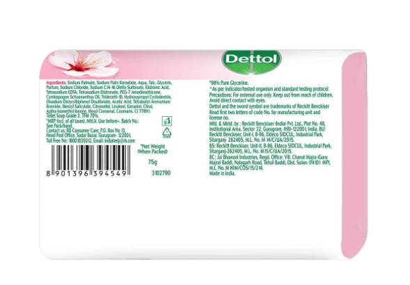 | Included Components | Dettol Skincare Germ Protection Bathing Soap bar, 75gm (Pack of 4) |