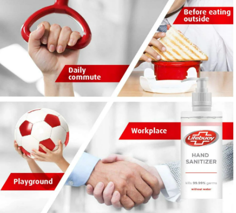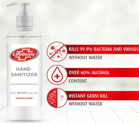 Lifebuoy Antibacterial Hand Sanitizer kills 99.9% bacteria and virus without water