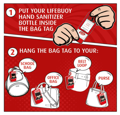 The easy to carry bag tags make it so convenient that you will never forget your new best friend when out of home. To use, put the Lifebuoy Hand Sanitizer inside the bag tag and attach it to your kids school bag, your purse, laptop bag, key chain or belt. The packs are also perfect for gifting.