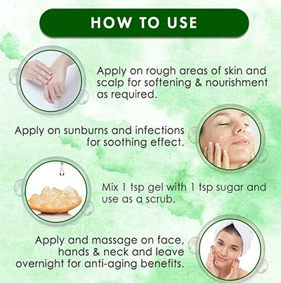 Aloe Vera Gel is a cleansing conditioner for strong, shiny and dandruff free hair, it is great for use as a hair gel, or leave in conditioner for shinier, healthier hair. It is also a hair & scalp nourisher, just start massage liberally on the scalp. Leave overnight. Shampoo the next morning.