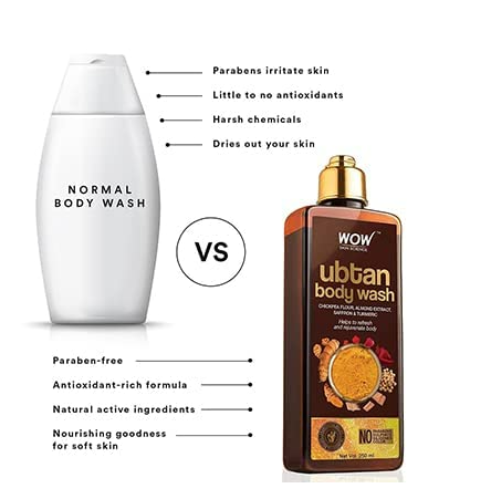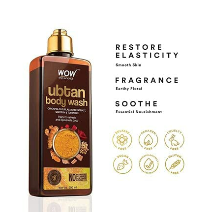 WOW Skin Science Ubtan Body Wash for Tan Removal and Glowing Skin - With Chickpea Flour, Almond, Safron & Turmeric Extract - 250 ml