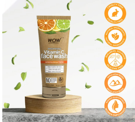 WOW Skin Science Vitamin C Face Wash In Paper Tube (Eco Friendly Packaging) - No Parabens, Sulphate, Silicones & Color - 100ml
