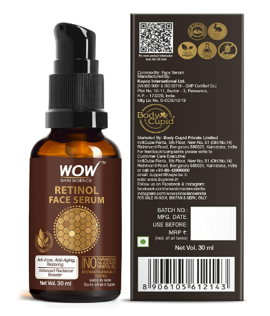 Help revive your dull, acne-prone aging skin with WOW Skin Science Retinol C Face Serum. Infused with potent retinol and other natural actives this serum helps to fade pigmentation, fight signs of aging brought on by free radicals, brighten and nourish skin.
