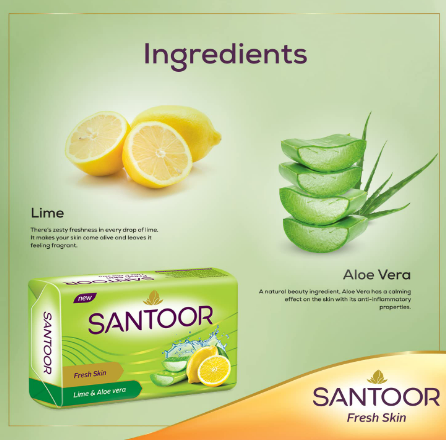 Santoor Aloe Fresh Soap, 125 g (Buy 4 Get 1 Free)