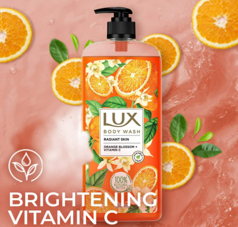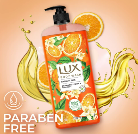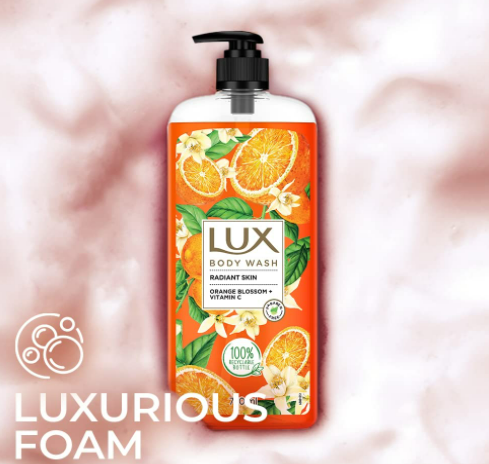 Lux Body Wash Radiant Skin with Orange Blossom & Vitamin C for radiant skin with glycerine and Essential oil, paraben free, 100% recyclable bottle