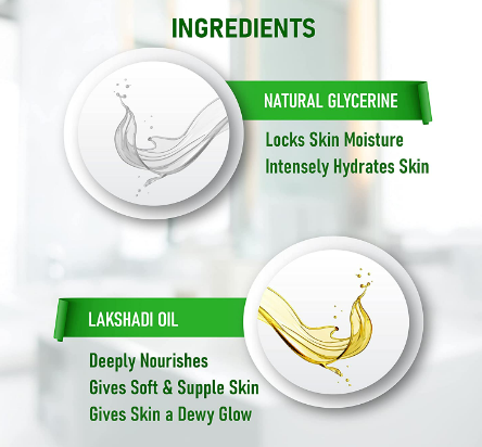 Now, turn an ordinary bath into an Ayurvedic beauty ritual.Natural Glycerine locks moisture in the skin, making it soft, supple taut and balanced.Contains Lakshadi Oil, a time-tested Ayurvedic oil preparation with nourishing, therapeutic and curative properties