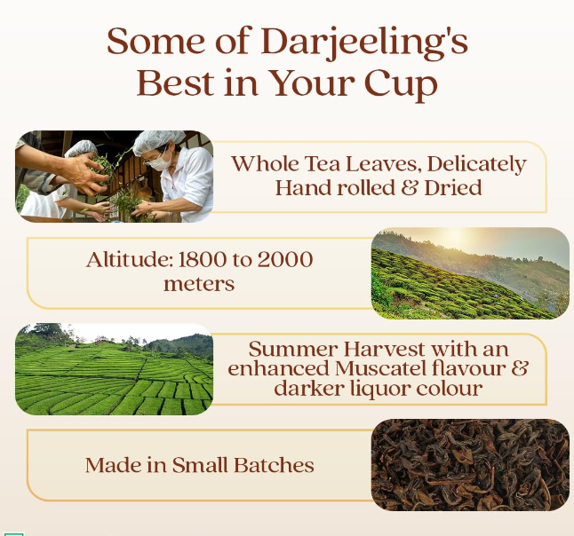 DARJEELING’S SOUL IN YOUR CUP: Experience this second flush harvest from Darjeeling with Muscatel flavours, full body and darker liquor colour. This rare whole leaf tea is hand plucked, delicately hand rolled and dried to get the much known Light, Sweet notes.