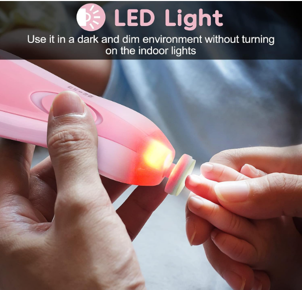 [LED Light and Quite]: This baby nail file is built in soft led front light, it will help to use in dark environment, and it's quite during operation, can use the kit when baby sleeping, no worry the baby crying when clear nails