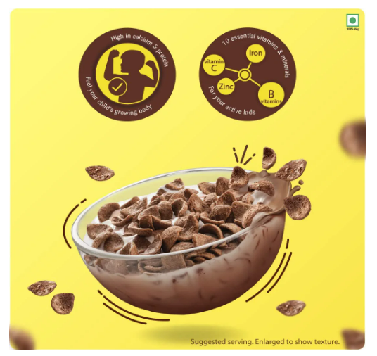 Kellogg's Chocos is high in Calcium & Protein that is essential for your child's growing body.; It is enriched with10 essential vitamins & minerals like Iron, Zinc, B Vitamins & Vitamin C for your active kids.