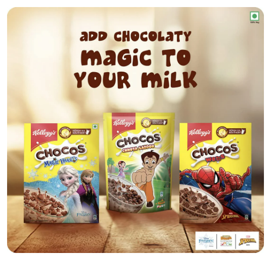 Kellogg's Chocos is a nourishing & solid breakfast for kids. It makes milk chocolaty & delicious.;Kellogg's Chocos has the goodness of whole wheat. Each serving of 30g Kellogg's Chocos has Protein and Fibre equal to that of 1 wheat roti of 30g.