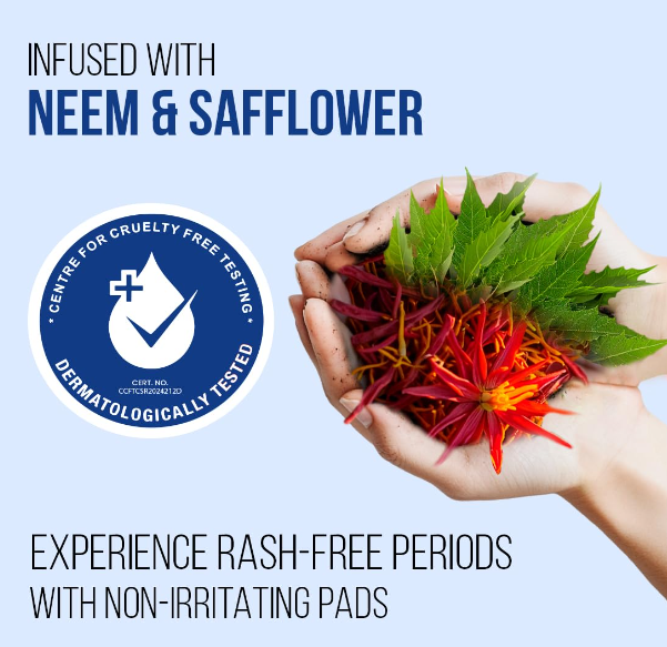 A quality product from everteen, the complete feminine health and hygiene expert;Manufactured at one of India’s most sophisticated, ultra-modern and hygienic manufacturing units using fully automated, touchless processes;Skin-friendly, cottony dry top-layer, 320mm-long pads ideal for overnight use, wide double-wing shape;8-layer protection, odour locking gel-core system with advanced leak protection;Anti-rashes and anti-tanning properties, with the goodness of neem and safflower extracts