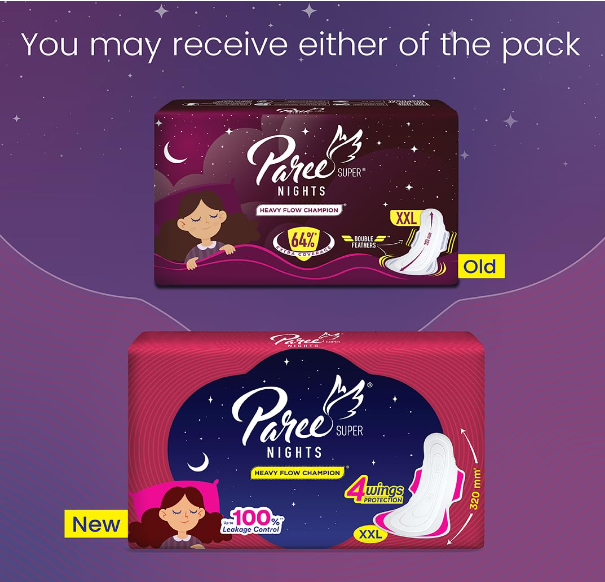 Paree Super Nights XXL 30 Soft Pads|Upto 100% All-Night Leakage Protection|Heavy Flow Champion|4 Wings Wider Back Coverage For No Stains|Sanitary Pads For Women with Disposable Wrapper