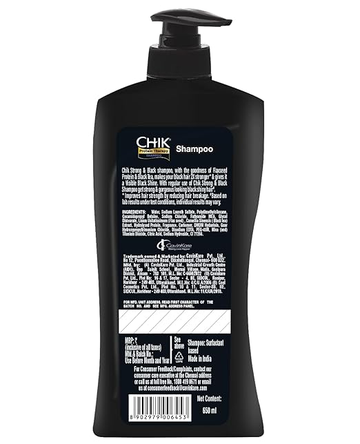 Chik Protein Therapy Shampoo| For Strong & Black Hair | With The Goodness Of Black Tea, and Flax Seeds | 650ml