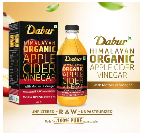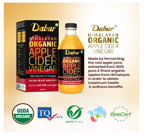 Dabur Himalayan Organic Apple Cider Vinegar with Mother of Vinegar |100% Pure | USDA Organic Certified | Raw, Unfiltered and Unpasteurized | Good for Heart and Liver Health | No added colours or preservatives - 500 ml