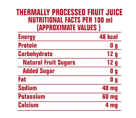 No Added Sugar - The juices are not added with any sweeteners (artificial or nutritive) to keep it pure and natural.