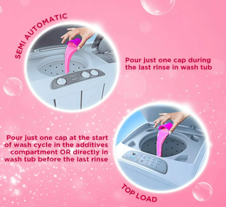 Easy to use: After washing with detergents, pour ½ a cap of Comfort in a bucket of water & soak clothes for 5 mins. Remove and dry them. Don’t rinse the clothes again.