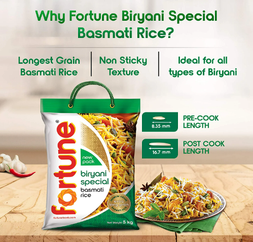 Fortune Biryani Special Basmati Rice, Extra long grain basmati rice, 5 KG