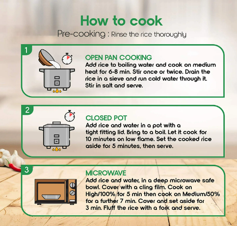 • After cooking rice elongate over 2 times and become flavorful and taste.