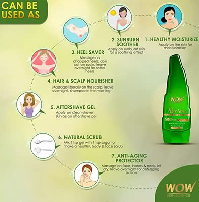 WOW Aloe Vera Gel is 99% pure extracted from ripe, robust & succulent Aloe Vera leaves. Regular use of our Aloe Vera Gel for face is highly recommended to get the best results.