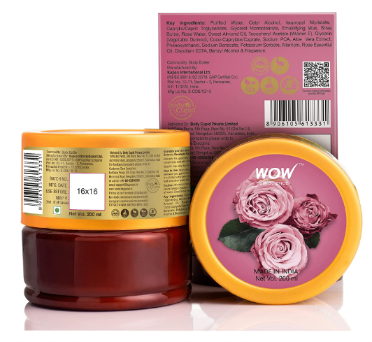 A rich body butter with the goodness of rose water, rose essential oil, shea butter, sweet almond oil and aloe vera extract, to give your complexion a radiance boost. It helps to moisturize dry, dull skin keeping it soft and supple through the day. The exotic floral scent of body butter leaves your skin smelling fragrant. It soothes your senses and restores sluggish body. It helps to condition skin.