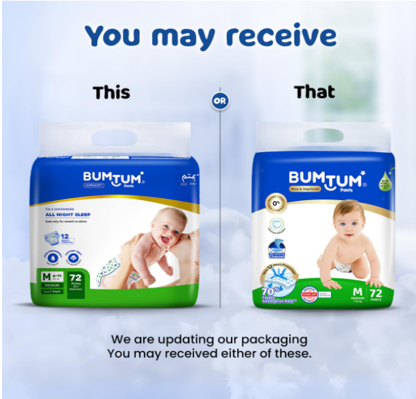 BUMTUM PANT-STYLE DIAPERS: are uniquely curated to keep your baby's day & night full of comfort and materialized with cottony soft, breathable, and non-woven material that ensures a cosy experience.