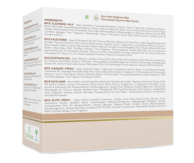 INSTANTLY BRIGHTENS SKIN: Rice Facial Kit is infused with the goodness of Rice Water which is proven to brighten dull skin and add a radiant glow to the skin, instantly.